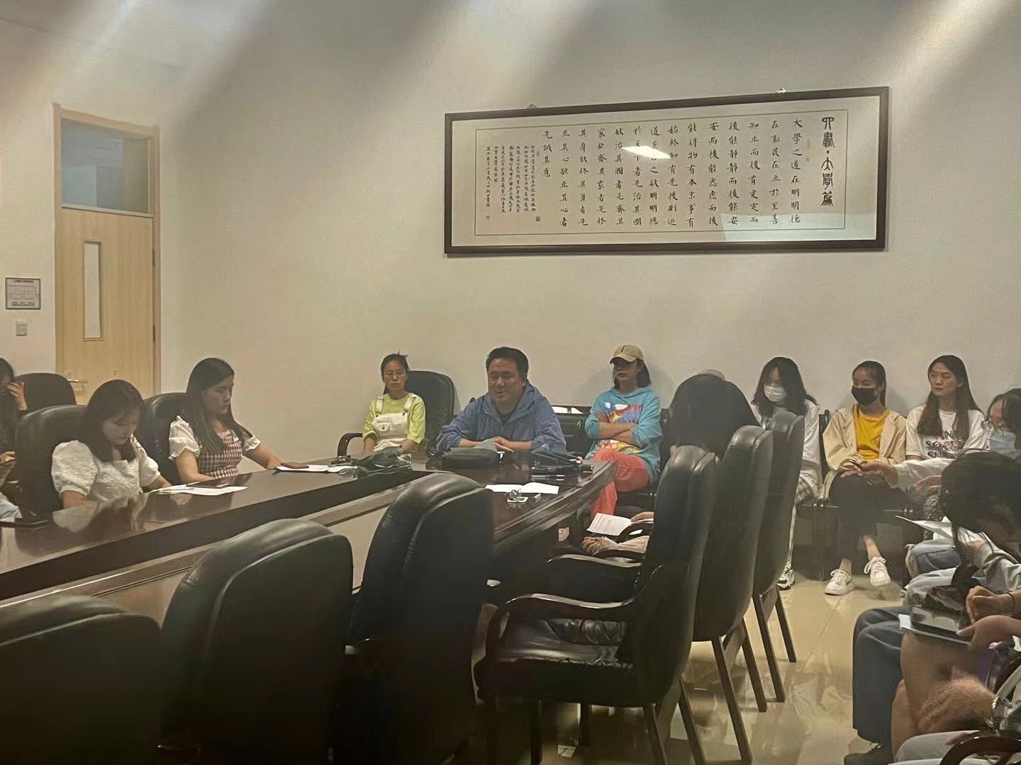 大会议程共三项。第一项由2018级汉语言文学文秘专业实习指导老师王琪老师发言。王老师的发言主要有三方面的内容,第一方面是对2018级文秘专业实习的前期准备工作情况做了说明。第二方面是王琪老师对实习过程中自身作为指导老师如何进行监督做出说明。主要通过三方面进行监督考核:一是实地进行考察,二是与实习老师沟通交流了解,三是由学生提交的实习材料展现,并对实习过程中的表现提出表扬与批评老师对实习结果做出表扬与批评。第三方面是对优秀实习生评选标准做了解释。优秀实习生评定依据是通过实习手册、实习简报、实习成果汇报及实习老师打出的分数根据一定的比例得出分数,初步确定十三位位候选人。
