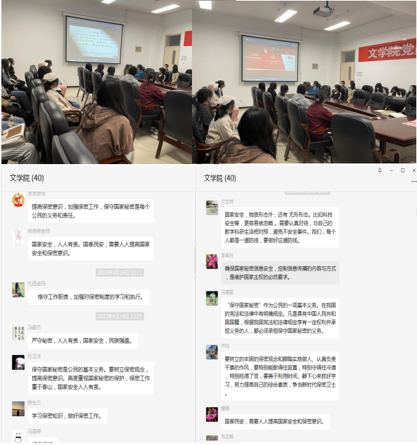 组织专题会议,学习了习近平总书记关于总体国家安全观的论述、《反分裂国家法》《中华人民共和国国防法》《中华人民共和国生物安全法》《中华人民共和国网络安全法》等内容。通过学习交流,增强师生对国家安全知识的了解,清楚认识到国家安全的重大意义和国家安全机关在依法执行公务时的有关权利义务,更加清晰地认识到维护国家安全人人有责,同时掌握了一些防止手机、网络途径等泄露国家秘密、危及国家安全的基本常识。