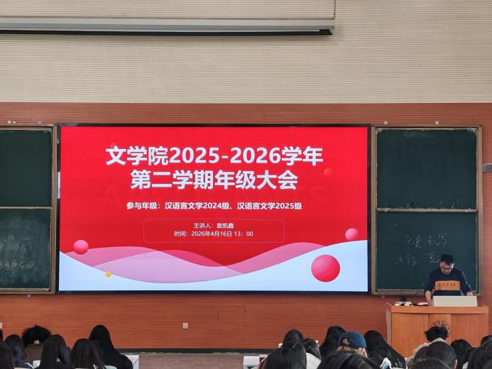 于2026年4月16日13:10在东二楼F101召开年级大会。本次大会由辅导员袁凯鑫主讲,2024级、2025级全体学生参会。