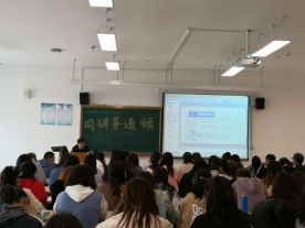 赵君老师分别讲解了普通话的意义、普通话测试试卷构成、测试目的、评分、注意事项。介绍了社会各行各业对工作人员普通话的等级要求。讲座过程中,赵老师不时举例让学生体会普通话表达中的各种要求,让听讲座的同学获益良多。此次讲座,不但呼应了国家语言政策的宣传与实施,也让广大同学了解了普通话水平测试的相关政策和技巧,极大地增强了同学们学好普通话的自信心。