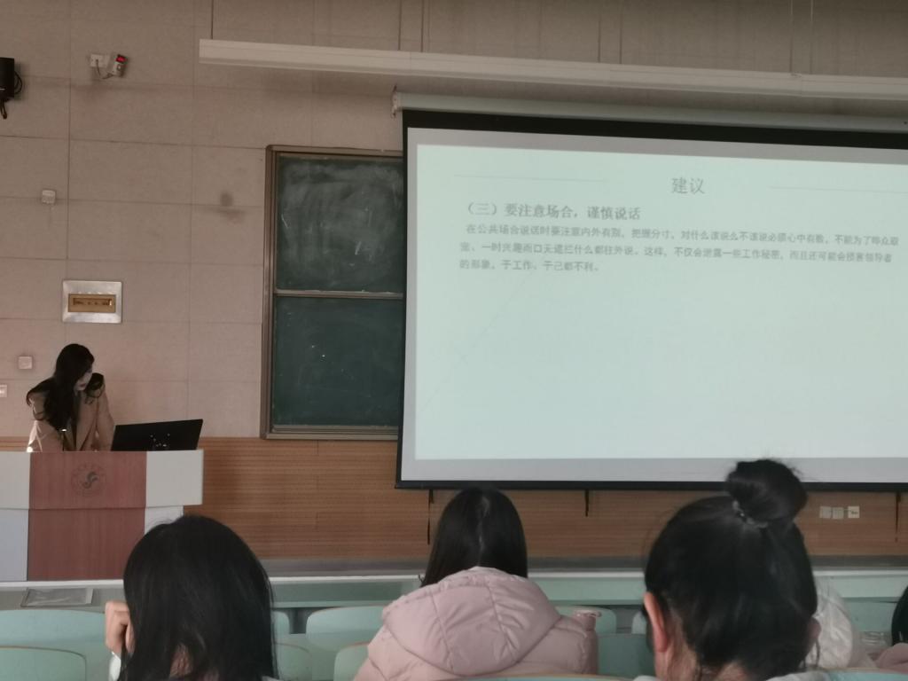 王琪老师解读了2018级行政文秘班的实习方案和实习计划。第一套预案是自主实习与集中安排相结合,第二套预案是校内实习。王老师还对自主联系的实习单位的要求、联系实习单位的技巧、实习的起止时间、实习过程中的纪律、实习开始前的注意事项等问题进行了讲解。最后,王老师勉励同学们全力以赴、勇往直前开展实习工作,在实践平台中锻炼自己的能力,将课堂所学理论转化为自己解决问题的思路和方法,在实践中增强行政文秘专业同学的专业素养。