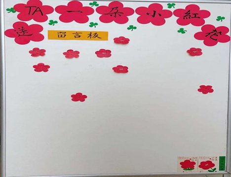 “送TA一朵小红花”,留下最真的爱。留言板上是同学们对顶岗支教同学的真切祝福、是对实习指导教师真切感激、是愿意加入队伍的真切期盼……我想这份爱,寄予纸张,却留在我们的心底。