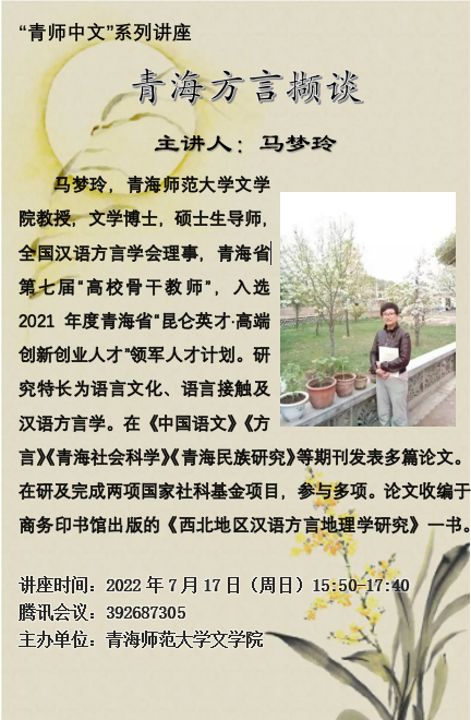 马梦玲,开云体育官网 教授,文学博士,硕士生导师,全国汉语方言学会理事,青海省第七届高校骨干教师,入选2021年度青海省“昆仑英才·高端创新创业人才”领军人才计划。研究特长为语言文化、语言接触及汉语方言学。在《中国语文》《方言》《青海社会科学》《青海民族研究》等期刊发表多篇论文。在研及完成两项国家社科基金项目,参与多项。论文收编于商务印书馆出版的《西北地区汉语方言地理学研究》一书。