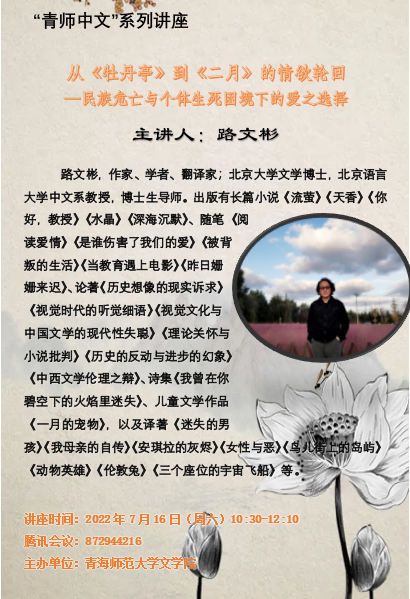 讲座题目:从《牡丹亭》到《二月》的情欲轮回——民族危亡与个体生死困境下的爱之选择