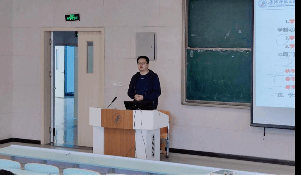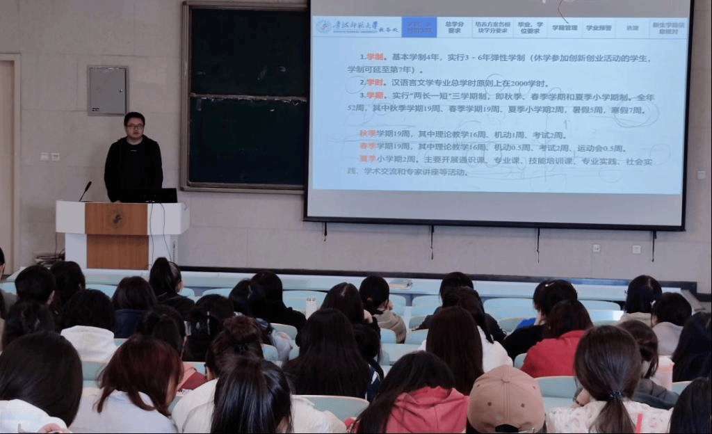 李昌处长分别从学校学制、总学分要求、培养方案各模块学分要求、毕业要求、学籍管理、学业预警、选课及新生学籍信息核对等八个方面为同学们进行深入解读,对同学们大学发展规划中不明晰的地方展开全面细致的说明。