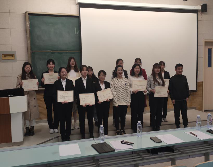 之后在3位评委严肃、认真地讨论过后,公布比赛分数。本次比赛产生了两个一等奖,三个二等奖,三个三等奖,三个优秀奖。最后各评委依次为获奖选手颁发荣誉证书,大家合影留念。