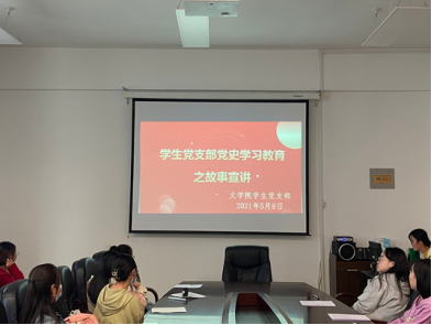 会议室开展党史学习教育。由党支部书记贾国仓主持,全体学生党员、预备党员、党员发展对象、入党积极分子参加。