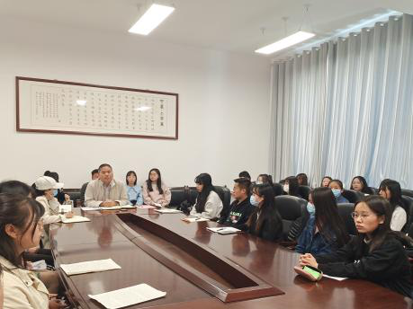 会议室开展党课学习活动,学生党员、预备党员、党员发展对象、入党积极分子参加。
