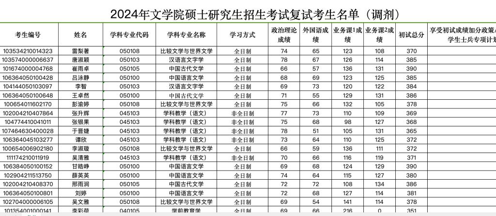 2024年开云体育 硕士研究生招生考试复试考生名单(调剂)
