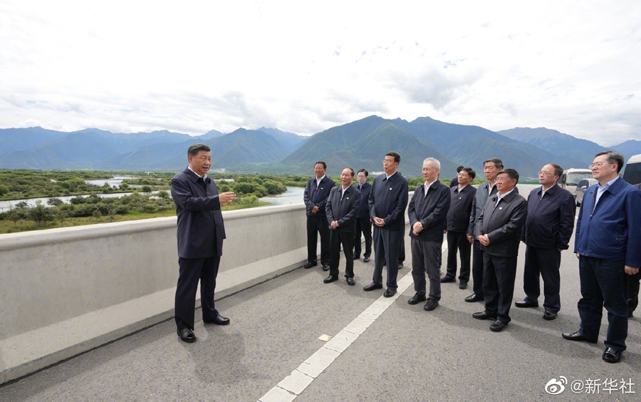 习近平总书记21日赴西藏考察调研。当天上午,习近平乘坐飞机抵达林芝米林机场,受到西藏各族干部群众热烈欢迎。随后,他乘车来到尼洋河大桥,了解雅鲁藏布江及尼洋河流域生态环境保护等情况。当天下午,习近平先后来到林芝市城市规划馆、巴宜区林芝镇嘎拉村、工布公园,考察城市发展规划、乡村振兴、城市公园建设等工作。22日上午,习近平来到林芝火车站,了解川藏铁路总体规划及拉萨至林芝段建设运营等情况,随后乘火车前往拉萨市,实地察看拉林铁路沿线建设情况,深入研究有关问题。