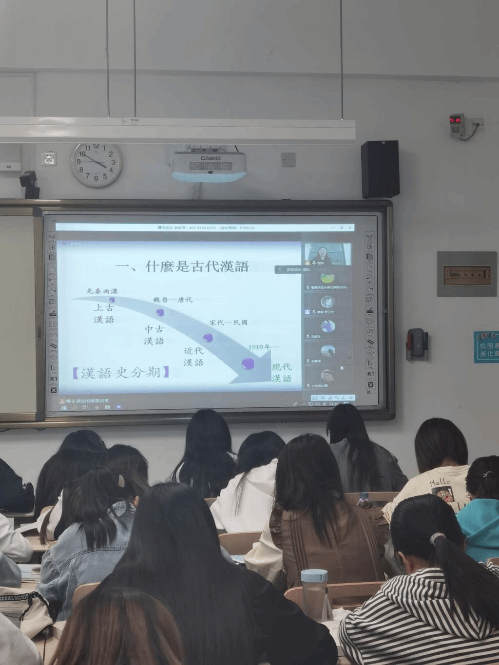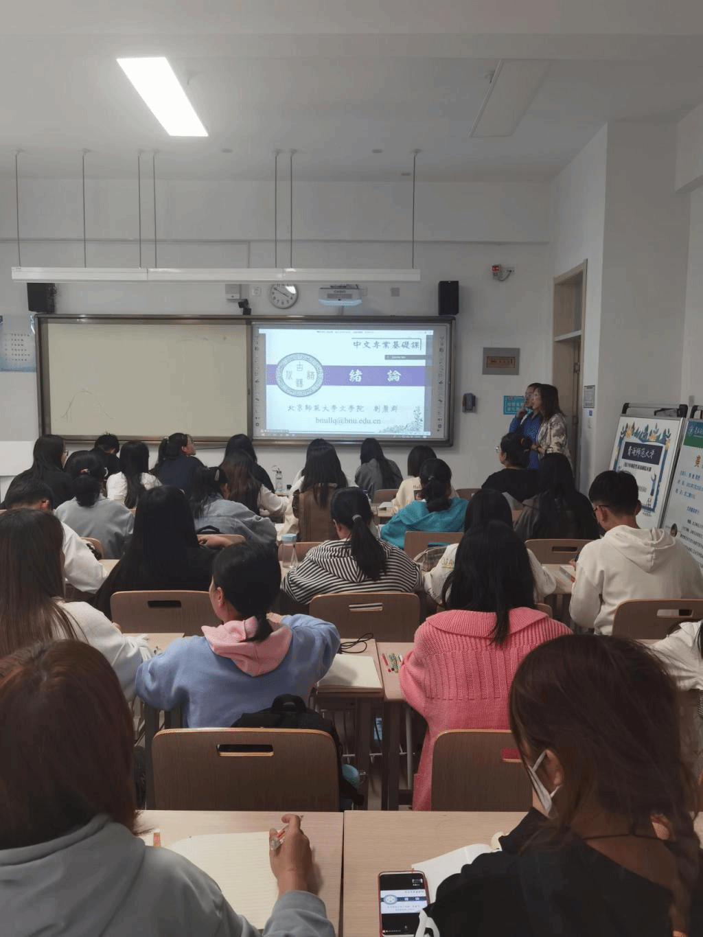 语言教研室古代汉语老师李春玲教授、张翔老师,以及该班班主任马媛颖老师。课后老师们围绕此次授课以及今后在课程作业、学业考核、学生辅导等方面的事宜进行了深入交流。