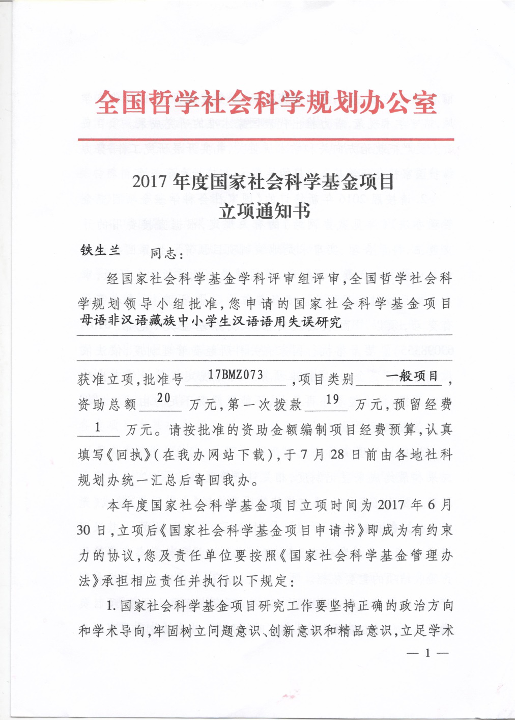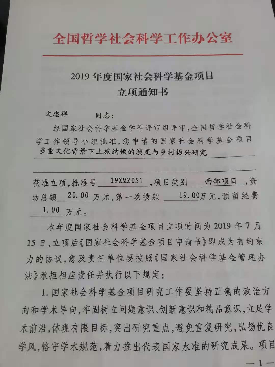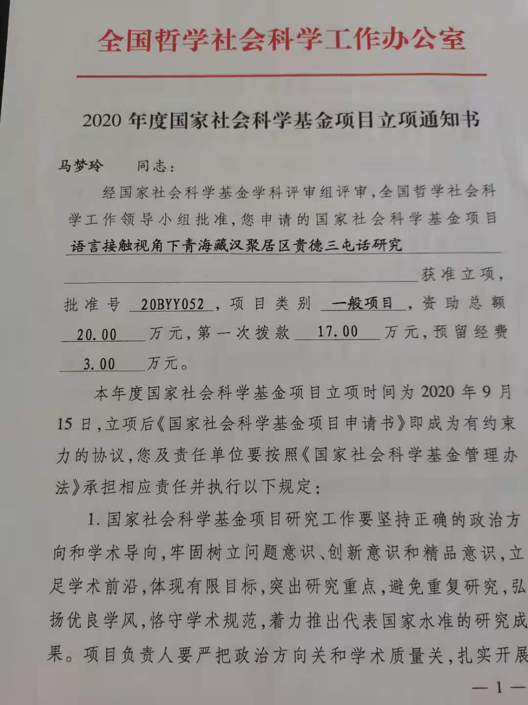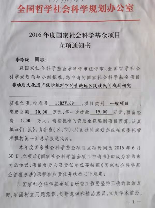 部分立项证书