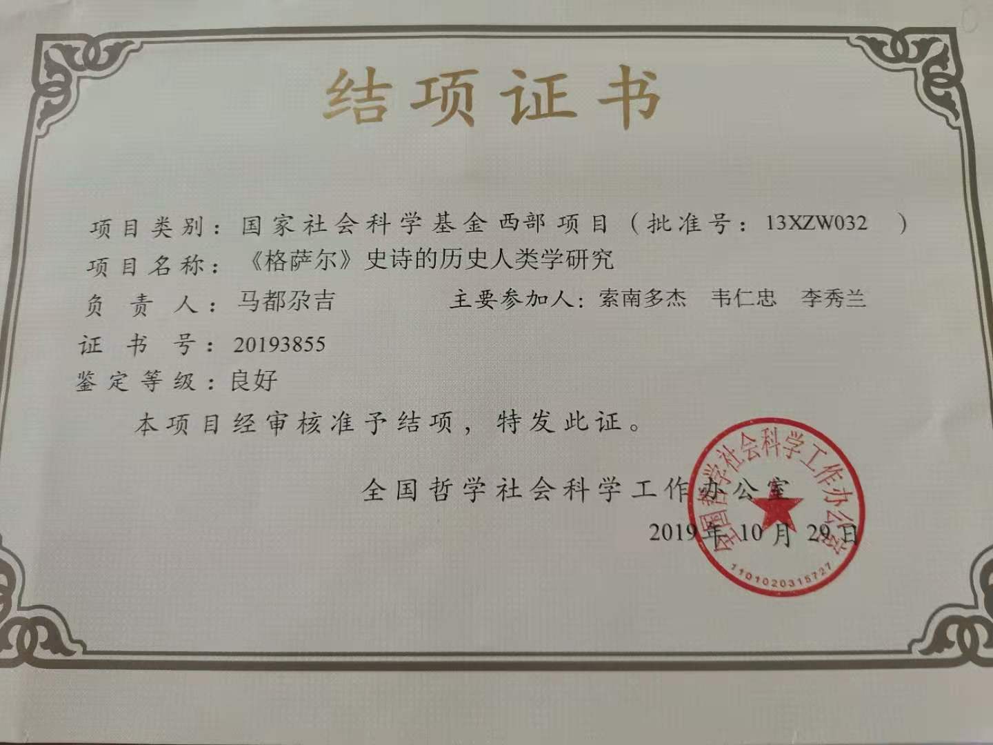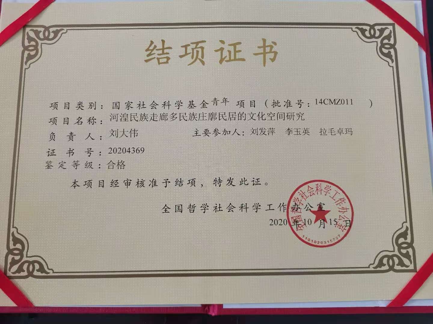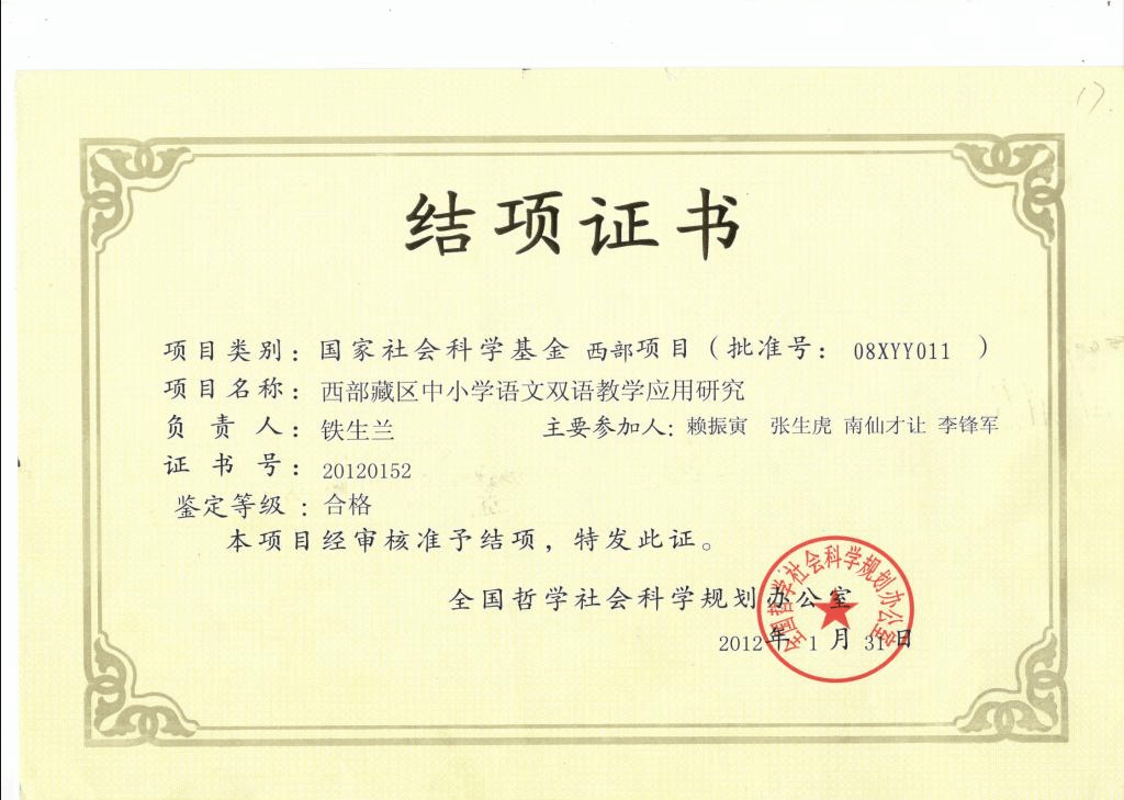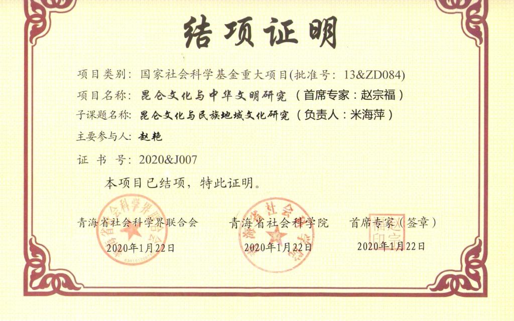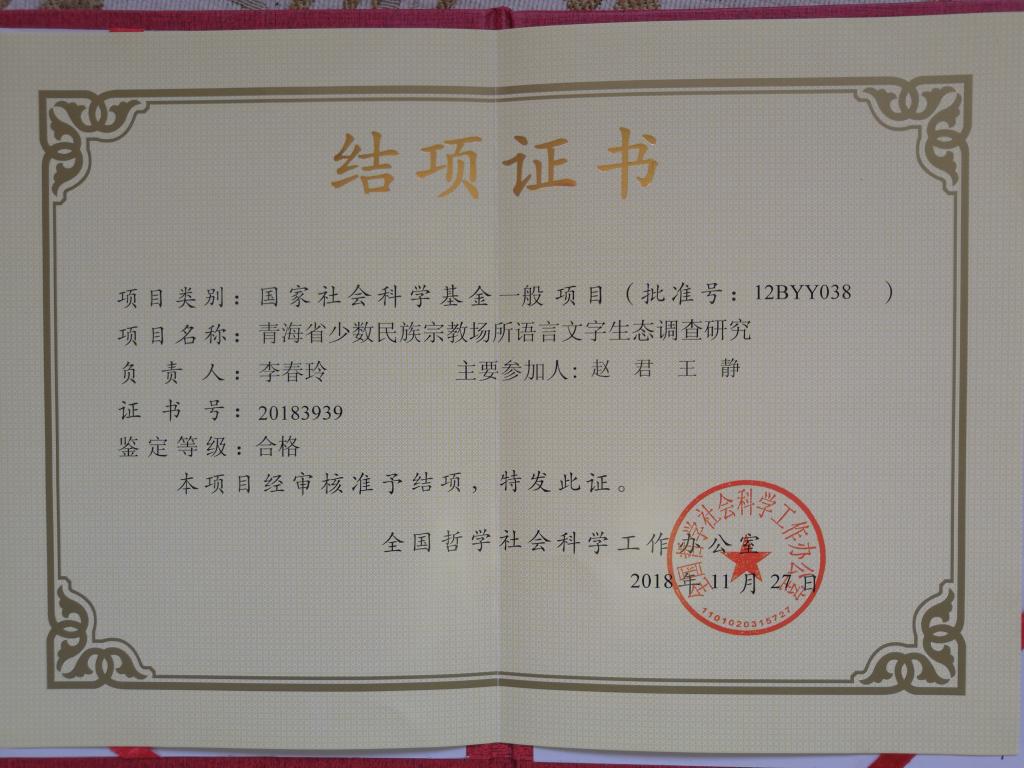 部分结项证书