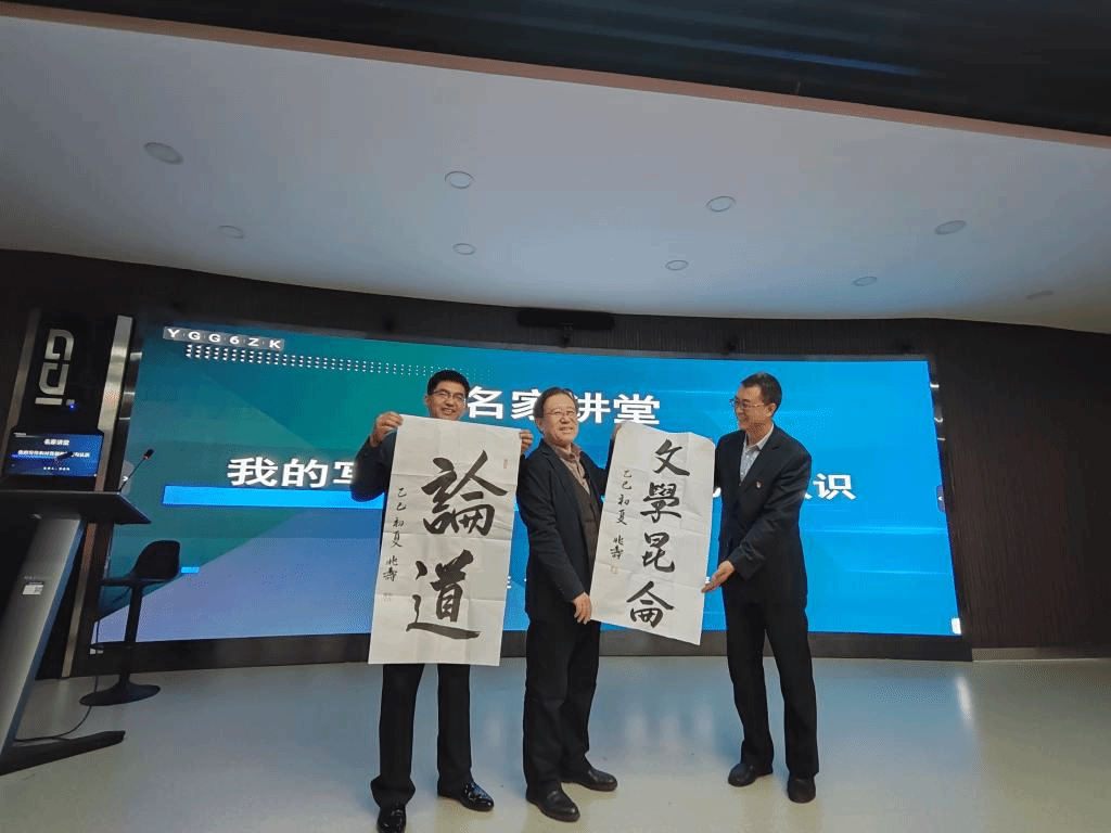 讲座伊始,徐兆寿教授向杨志军文学研究中心赠送了题写的两幅墨宝:“文学昆仑”“论道”,开云体育 党委书记韩维良教授和杨志军中心常务副主任马豪杰副教授共同接受了徐老师的书法作品。文学昆仑寄托着对西部文学攀登高峰的期许,论道彰显了学术探索的追求,为活动增添浓厚文化底蕴与艺术气息,也为杨志军文学研究中心留存珍贵文化资源,激励广师生深耕文学创作、探索西部文化文学精髓。